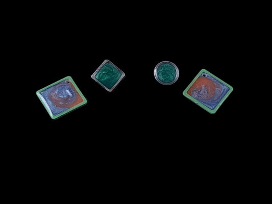 Oorringen deel achter de lel, Vierkant// zilver - blauw - groen - oranje