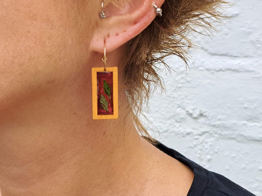 Oorringen Rechthoek, deel achter de lel // blauw - geel - groen - wit