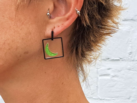 Oorringen Maan // zwart - groen