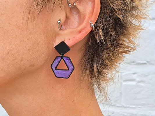 Oorringen Zeshoek // zwart - paars