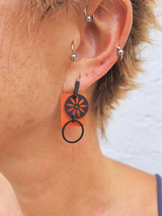 Oorringen Vierkant // zwart - oranje