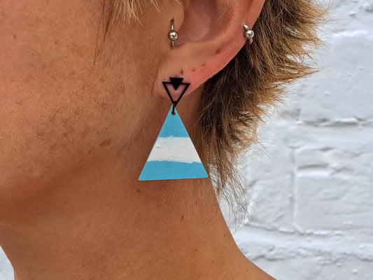 Oorringen Driehoek // zilver - wit - blauw