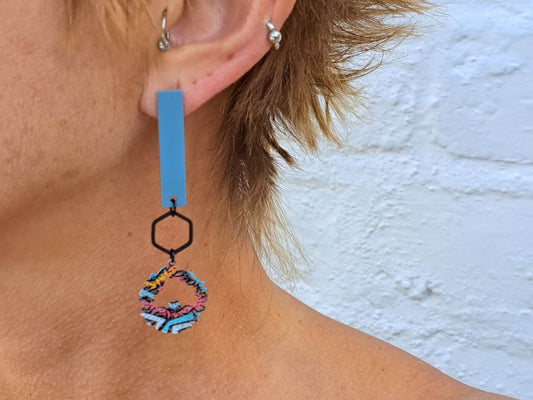 Oorringen Staaf // zwart - blauw - geel - rood