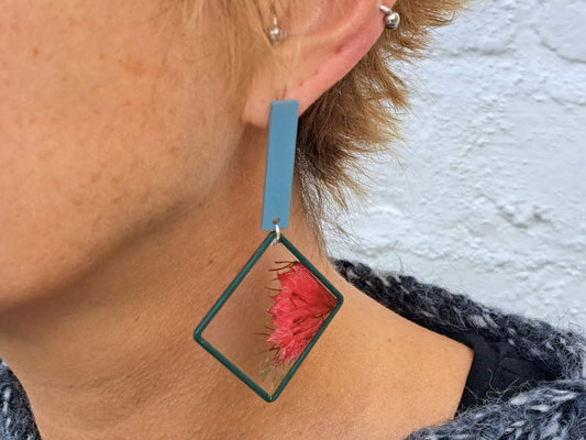 Oorringen Bloem // zilver - blauw - groen - rood