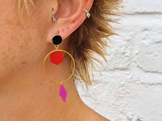Oorringen Geometrie // goud - paars - rood - zwart